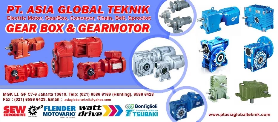 PT. ASIA GLOBAL TEKNIK adalah agent suplier alat berat dan ringan seperti pompa, gear box, gear motor, pneumatic - vibrator , valve, bearing , coupling , belt - pulley , electric motor dan chain,Bagi anda yang membutuhkan berbagai ELECTRIC MOTOR DAN GEARBOX. Dapatkanlah motor dan gearbox yang anda/Industri anda butuhkan seperti :